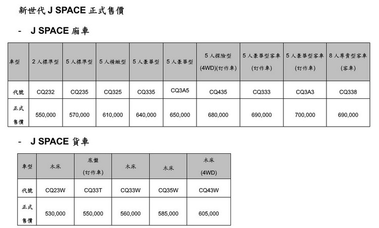 輕商大進化,商用車領導品牌中華汽車展現自主研發能力,以超越同級之姿推出新世代 J SPACE。J SPACE不只在動力、配備及內外觀全面升級,更領先同業首度於商用車款中搭載Level 2 ADAS先進駕駛輔助系統,安全防護一次到位。新世代J SPACE以跟同級相當的價位帶提供更優異規格配備選擇,自11/8展開預接單銷售,即掀起討論與銷售熱潮,截至今日整體接單已突破1,200台,年底前將挑戰3,500台。而今(19)日中華汽車於上市發表會上公佈J SPACE正式售價:廂車舊換新50萬起;貨車48萬起。