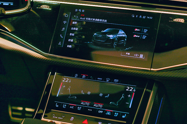 而RS Q8 標配Bang & Olufsen 3D 環繞音響系統,藉由 17 具揚聲器與 730 瓦高功率輸出,在享受純粹駕馭同時,也享受高規格的視聽感受,給予更動感、更進化的駕乘體驗。