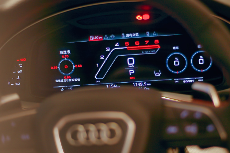 ▲駕駛前方Audi 全數位虛擬駕駛座艙 plus 搭載 RS 專屬介面,於行駛時呈現多種性能資訊。