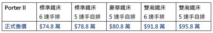 Hyundai汽車再傳捷報,PORTER II柴油小霸王3月領牌數492台,創下歷年同期銷售新高紀錄,穩居同級商用車銷售冠軍。自2025年起安全配備升級不加價,上市以來訂單已突破1,400台,顯示市場熱烈回響。延續熱銷氣勢,Hyundai汽車宣布全新PORTER II標準單廂與豪華大單廂「自排鐵床新機型」即日起於全台上市,新車型售價分別為$78.8萬元與$80.8萬元,並提供升級原廠木床優惠價2萬元,兼具實用與彈性。