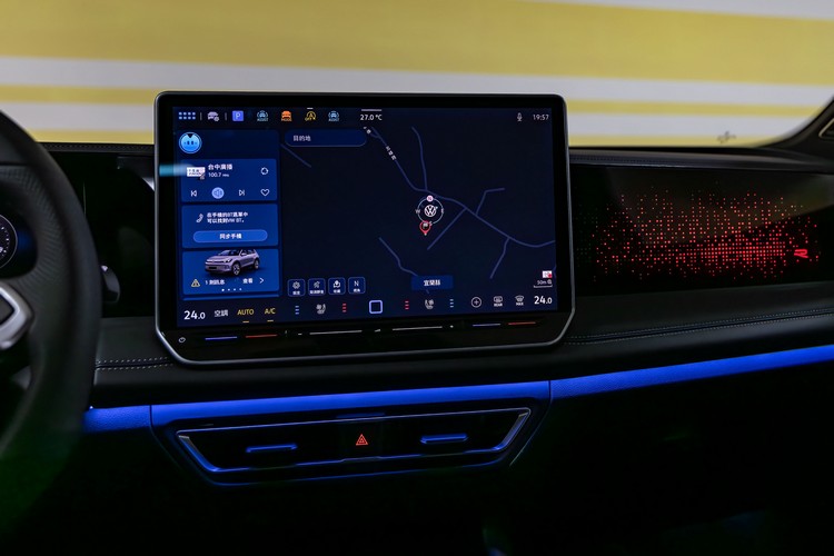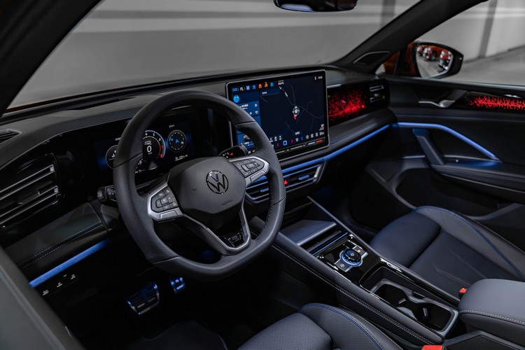 Tiguan首度搭載中央數位控制旋鈕,可透過按壓、旋轉或滑動,切換駕駛模式、氛圍模式和調整音量。車室以高光澤飾板結合車室氛圍燈環繞,並可依照不同模式進行變換。