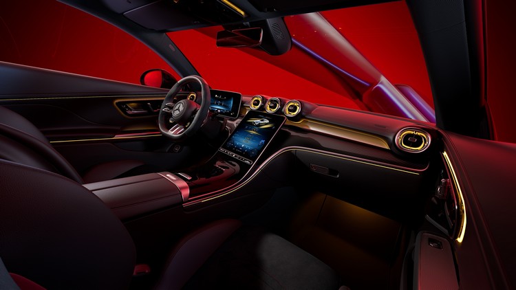 外觀張力透過精緻的黑化細節層層堆疊:AMG 夜色套件將前保桿下緣、車外後視鏡罩、側窗框與腰線飾條全面採亮黑處理,並延伸至側裙與後下擾流板;搭配後側窗與後擋風玻璃的深色處理,營造出如影隨形的流動感,宛如城市夜幕中冷靜掠行的存在。AMG 空力造型套件則進一步強化車身輪廓,包含前擾流板及兩側勾狀翼片,在優化空氣力學表現的同時,為整體造型注入更鮮明的性能層次。視線向下延伸,20 吋 AMG 交叉輪輻式鍛造輪圈,為車輛動態表現勾勒出俐落而銳利的收尾。而車主最後能還能 0 元自由搭配五種特殊漆面打造專屬夢想車,讓每一台「140 Years Edition」擁有專屬的詮釋。