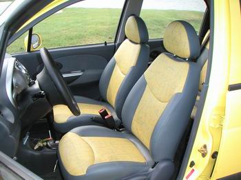 ▲內裝最大的特色就是與車身同色的座椅色調同時,強調年輕特色的Matiz,為了讓年輕學子不僅能夠輕鬆買車,還能順便A好康,推出了大專新鮮人購車優惠專案,只要是在8月14日起到9月20日止購買Matiz的本年度大專新鮮人,除了5920低月付款優惠可供選擇之外,還新增加了3333低月付款的專案,此外,還有數位相機乙部作為交車禮。