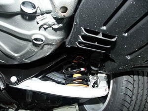 · 盡量降低非彈跳重量。 以改善乘坐品質。輪軸轂、趾部及後懸吊下連桿均為鋁合金製。防滾桿則採用中空鋼管製成。