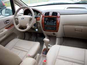 ![]() 這次改款動作主力著重在動力提升,而且外觀也做了小修改,例如以往直瀑式鍍鉻水箱護罩改為橫柵式,與Metrostar 2.5一樣的款是,前後車燈也做了小幅修改,鋁圈也採用了新款式,並且可選配加裝全車空力套件。MAV 2.0入門款採用織布內裝,鐵圈附輪圈蓋,少了霧燈與一點霸氣,不過看得出主打低價策略,高級款除了真皮座椅、米黃內裝、核桃木紋飾板,還有霧燈與全新造型鋁圈。這次MAV改款,福特六和已把第三排座椅列為選用配備,將寬敞空間回歸給最需要空間運用的車主,售價方面截稿時尚未公布,預計可能採用2.0房車的價格策略,將MAV 2.0定位成高頂休閒房車。