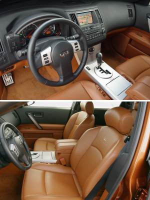 從外觀開始,FX就展現出其充滿侵略性的特質,根據原廠的設計師表示,他們在設計FX的時候,特別注意去避免一般SUV過於機能性的外型設計,這樣的設計導向往往在由房車轉換到SUV會失去一些具有美感的特質,NISSAN的設計師希望FX能避免這樣的遺憾而能夠具有GT跑車的味道,這一點可以從細長的氣體放電頭燈與大型的水箱罩體現,搭配上圓滑的車身線條與拉長的引擎蓋,FX的確展現了高級車該有的氣勢,而曲線短而急的車身後方線條則是為了SUV的特殊用途而設計,如此一來,便可以提供長軸距的FX足夠的進入角與離去角,車尾鍍鉻的雙尾管也暗示著FX不凡的性能;細長的尾燈除了呼應車頭大燈的動感造型之外,也有在高速行駛時增加下壓力的神奇作用。水箱罩中大型的INFINITI標誌決不會讓人將FX看成其他品牌,為了營造FX的獨特風格, 原廠甚至提供了八種特殊的車色可供選配。
