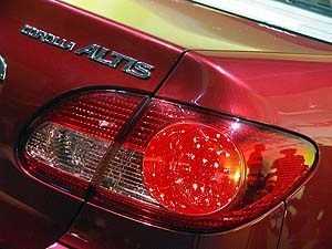 ![]() ▲小改款外觀變動水箱護罩設計、大燈組、尾燈組、鋁圈等部分,內裝僅增添新配備。COROLLA上市至今,全球累積銷售台數超過二仟九佰萬台以上,為全球銷售量最好的汽車。而於2001年上市的COROLLA ALTIS,為了擺脫TOYOTA給年青一代--『這是我爸爸的車』刻板印象,本著『邁向二十一世紀汽車的存在價值』,重新思考,並以『打破以往等級概念的水準,任何人都能盡情享受』作定義。造形有著 『在流行前衛中又不失高級』的特質,一改TOYOTA車輛較為保守之形象,讓年輕的X世代更能接受,但仍保有TOYOTA耐看又能為社會大眾普遍接納的特質,成功的拓展年輕X世代的市場,也讓TOYOTA在國內市場的消費平均年齡層下降三歲。