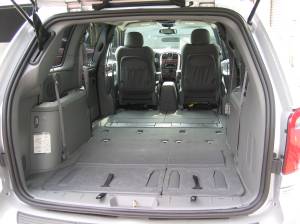 ![]() 2005年式的Town & Country在國內會有三種車型銷售,分別是3.3L(180hp)的短軸版和長軸版,和3.8L(215hp)長軸版的頂級車款,均為四速自排的柱排設計。新車在外型上的改變,包括了頭尾燈和保桿的造型,水箱罩及車頂行李架的設計,然而最值得注意的仍是它的座椅收藏相當便利,透過原廠精心設計的關節控制拉繩,在30秒內就可以把第二、三排座椅完全收納於地板之下,而不必像一般休旅車般費力地拆卸座椅,就算女性操作起來也毫不費力。在座椅收藏於地板下之後,行李廂容量可達4600公升!雖然作為商用車不是當初設計本意,不過這輛車就算拿來當作貨車使用也是游刃有餘。