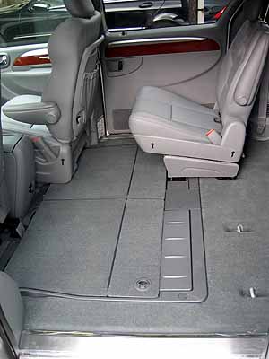 多變化的可收納第二排座椅還可前後調整10公分,椅背後傾角度並達40度,寬大舒適的乘坐空間共有13種座椅配置;另外位於第二排座椅下方的兩個大型置物盒除了可供收納座椅,並提供乘員在乘坐於第二排座椅時的額外置物功能,二個收納置物盒各有170公升的超大容量,加起來就已經相當於Peugeot 307在正常座椅配置狀況的340公升行李廂容量!換算這二個置物盒的容量,大小剛好等於65瓶的2公升寶特瓶汽水,置物便利性無可比擬!此外,只要輕拉第二排座椅面的拉帶,即可將座椅輕鬆往前覆倒,使第三排的乘客進出更加便利。第三排座椅也可完全收納於車底板下,同時在搭配折疊、收納或後傾等功能後共有12種配置。椅背可後傾39度,並可60/40分離折疊收納或向後翻折成為觀景椅,在露營、烤肉或釣魚時成為最便利的戶外座椅,開啟的尾門並可遮陽避雨;同時在第三排座椅可供正常乘坐狀況的後方收納置物盒,容量達747公升,更是載物的好幫手。在第二、三排座椅各種角度的相互搭配使用下,Town & Country的座椅配置共達256種,同時在二、三排座椅完全收納至底板下後,Town & Country的行李廂容量可達4689公升,已創休旅車產品之最!