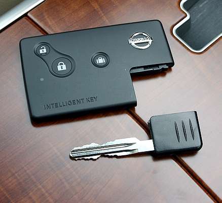 ▲Teana使用名為I-Key的鑰匙,使用起來相當方便,只要攜帶在身上,按下車門把手的按鈕進行身份辨識,就可以直接旋轉啟動鈕發動引擎,萬一沒電也可用備用鑰匙發動引擎。