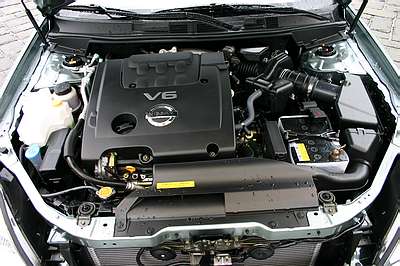 、代號VQ23DE的2.3升V6引擎以及享譽盛名的VQ35DE,3.5升的V6引擎。QR20DE引擎現已裝載於Sentra 200以及X-Trail 2.0車上,經過調校之後可發揮150hp/6000rpm的最大馬力以及20.4kgm/4000rpm的最大扭力。VQ23DE的排氣量為2349cc,搭配NICS可變進氣系統以及CVTCS可變氣門正時系統,可發揮最大馬力174hp/6000rpm,最大扭力22.9kgm/4400rpm,不但運轉寧靜平順,動力也比Cefiro的2.0 V6引擎優異,使得TEANA 2.3開起來完全不會有遲鈍的感覺。VQ35引擎則眾所皆知,從350Z、G35用到Cefiro,年底將裝置於TEANA身上,最大馬力調校為245hp/6000rpm,最大扭力為32.4kgm/3600rpm。TEANA引擎全部都採用電子控制油門系統,引擎反應非常靈敏,起步輕盈,駕駛起來相當輕鬆,沒有大車的笨重感。