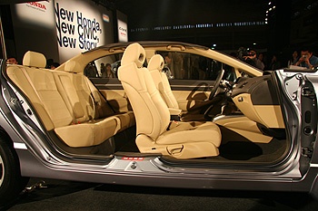▲大幅前移之檔風玻璃配合考量視野死角之基本設計,有效降低視覺死角。有別於上一代的內裝配備,全新第八代Honda CIVIC除了提升內裝質感之外,配備設計更添現代科技感;捨棄傳統三環式儀表設計,採用高視認性太空艙儀表,以充分的人體工學設計儀表板顯示位置,駕駛人可專注前方路況,提升駕駛安全性;橢圓形方向盤設計除造型先進具未來感外,操控手感優異且提升各種路況之轉向靈活性搭配方向盤音響快撥鍵,具備音源、音量與選取/選台功能,提升行駛時音響操作之便利性也提高行車安全;支援MP3、WMA及多種音樂媒體格式的前置音響系統;音響印刷式天線、恆溫式空調系統、類金屬排檔桿及Z型類金屬手煞車拉桿;與傳統設計相較,新一代HONDA CIVIC充滿新科技設計更能讓每一位車主讚不絕口。