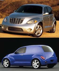 ![]() ▲GT Cruiser(上)與Panel Cruiser(下)是CHRYSLER在去年的車展中展出過,以PT Cruiser衍生而出的連lash;多新概念中之兩個範例。PT Cruiser Convertible在基本的機械結構上,完全與原本的量產車款相同,CHRYSLER的工程人員故意在這方面不做任何更動,以便讓欣賞的目光都集中在造型面上。雖然敞篷車款的車頂較硬頂車型降低了25.4mm,但車內的四名乘客仍能獲得非常充足的頭部空間。座椅採用四張座椅獨立配置的方式,其後座位置安排地較前排為高,因此無論是前後排的乘客都能獲得非常優異的視野。配合概念車款雙門的配置方式,一些叫lash;能性方面的設定也得改善,例如配合車門的加長,而在門內的後緣加裝了一個置物袋與喇叭,而後半車身內側則可以見到給後座乘客專用的凹陷扶手及禮儀燈。概念車款的前後座椅都可以自由折疊,以便盡可能地擴張其置物能力,例如容納下高爾夫球袋、雪橇或沖浪板之類的物體。
