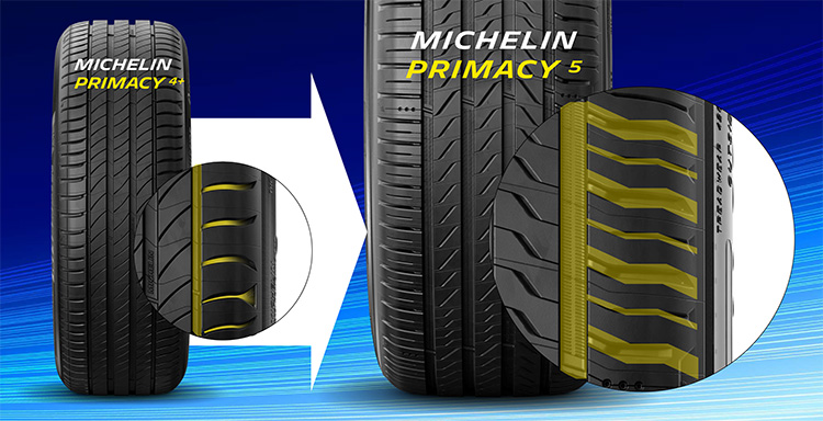 Primacy 5首次採用功能彈性體 3.0 膠料配方,導入米其林Evertread 長效科技,使輪胎磨耗里程較Primacy 5 4+提升 18%。至於Maxtouch 壓力均勻化科技則將輪胎接地面積最大化,使得加速、制動與轉彎時的受力更均勻,有效延長胎面壽命。