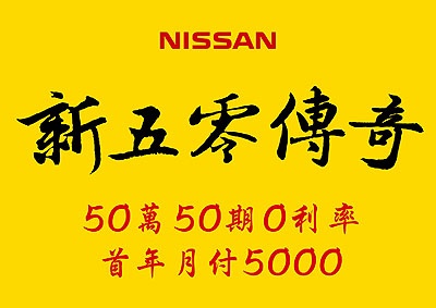 NISSAN新50傳奇─50萬50期0利率首年月付5000元