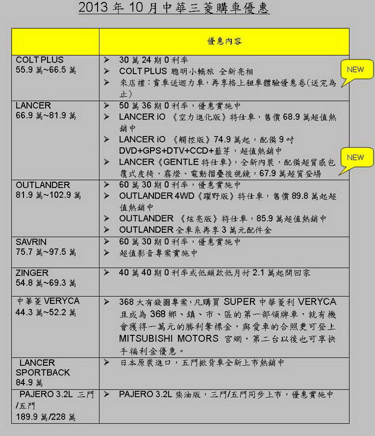 即將邁入第四季傳統銷售旺季,為搶攻新車掛牌數,各車廠紛紛推出全新車型,MITSUBISHI為貼近車主用車需求,並強化產品力,除日前推出COLT PLUS聰明小轎旅外,10月再推出LANCER GENTLE特仕車,將以好車犒賞車主,滿足市場多元需求。
