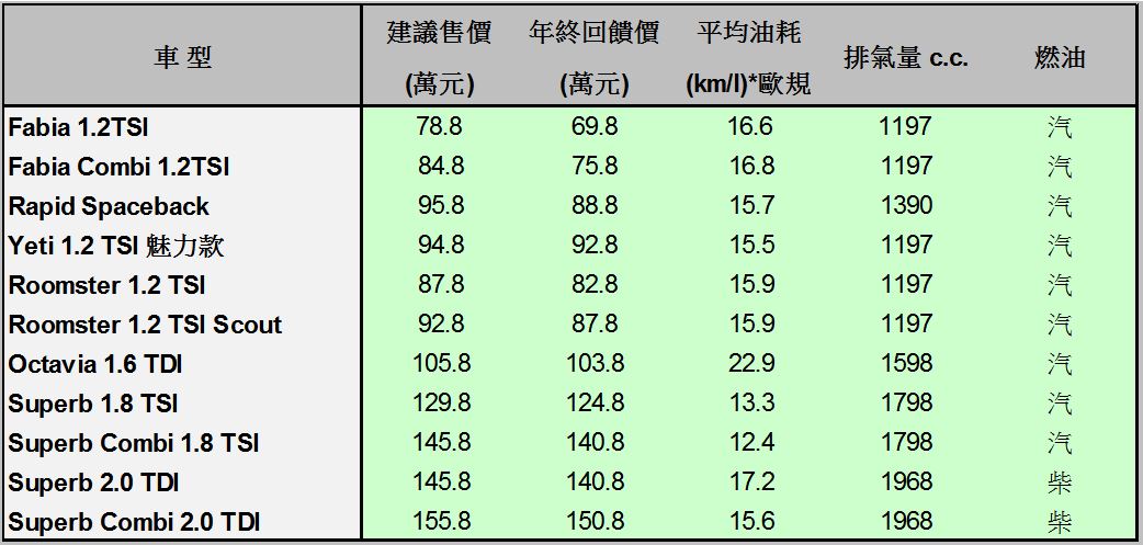 ŠKODA 即日起展開年終感恩回饋專案優惠,優惠車款包含Fabia、Rapid Spaceback、Yeti、Roomster、Octavia、Superb紛紛推出超值優惠專案價格。