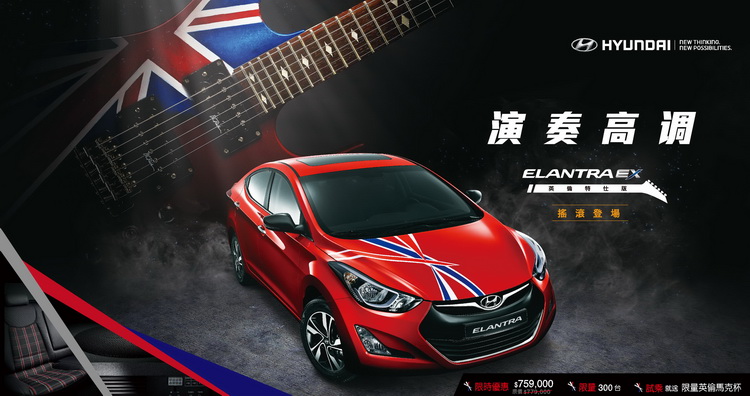 ![]() 其中運動休旅車Santa Fe與跨界休旅ix35本月購車送"萬元加油金"+"TPMS(胎壓偵測器)"。中型房車Elantra本月購車送"萬元加油金",而新上市的英倫特仕版限量300台也優惠價75.9萬(原價:77.9萬)提供。樂趣2+1門小轎跑Veloster本月購車送"2萬元加油金",輕型貨卡Porter本月購車送"萬元加油金" + 三免專案(免領牌規費 / 免牌照稅 / 免燃料稅 ),廂型休旅車Grand Starex本月購車舊換新送"2萬元購車金"。