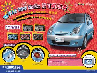 台朔汽車在12月份為旗下的Magnus與Matiz兩車系推出限時促銷方案,其中Magnus實施全車系零利率,2.0L車款59.9萬元起。Matiz 05年式以31種個人化內裝選配讓車主自行自己搭,汽車界絕無僅有的類精品式設計椅圖樣,完全凸顯Mix & Match流行風格,04年式則實施零頭款或30萬30期零利率優惠方案。另外,台朔還舉辦「歲末安可賞車會」,即日起來店賞車即送限量Maitz精裝poker,送完為止。另有42吋電漿電視週週送喔。