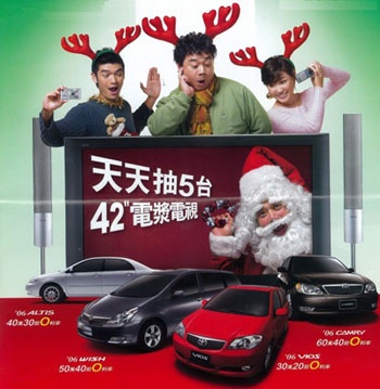 ![]() 延續11月「一訂有奇蹟」週週抽的豐富贈品內容,12月和泰汽車更將贈品加碼為「一訂有奇蹟」,訂車「天天」抽,天天送出全新機種Panasonic TH42PM50T 42吋電漿電視5台(市價NT$99,900),具超薄時尚外觀的Panasonic SC-HT15環繞音響10組(市價NT$16,900),擁有光學防手震功能的PanasonicFX-9數位相機(市價NT$14,900)。每天送出30個大獎,12月總計將抽出930位幸運得主。