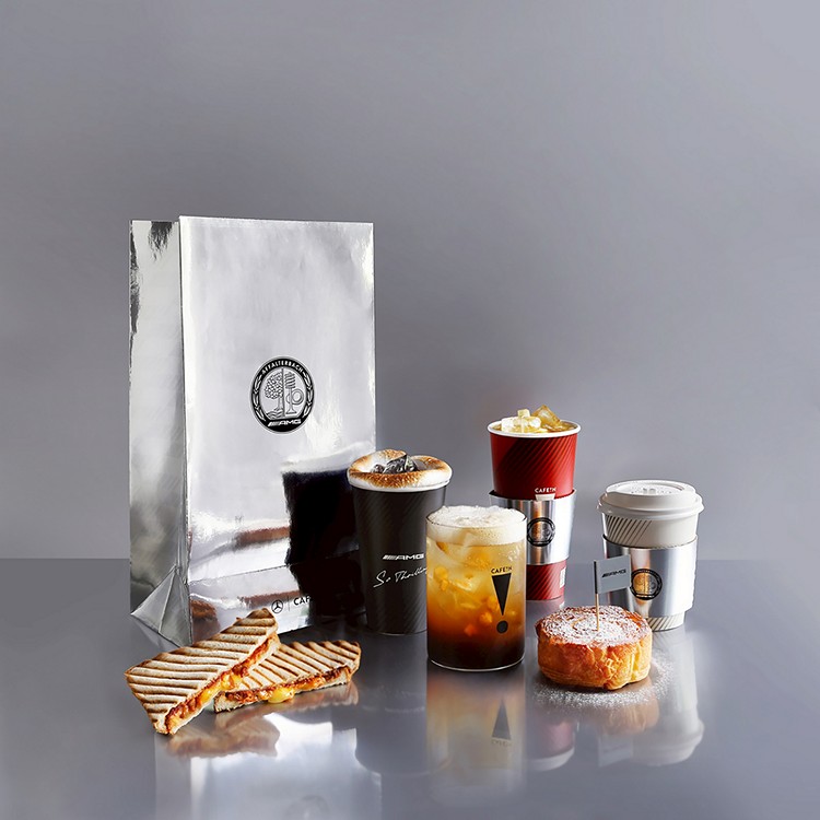 聯名餐點結合AMG的極致性能,將推出「AMG最速燒胎美式」、「燒胎拿鐵」、「賽道脆輪可頌」、「傳奇蘋果樹通寧美式」與「傳奇蘋果樹玉蘭綠茶」等,將AMG元素融入茶點咖啡。