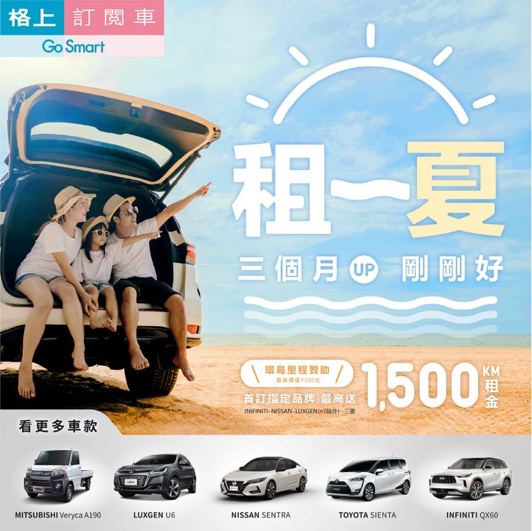 租一夏三個月剛剛好 首訂指定品牌最高送1,500公里租金