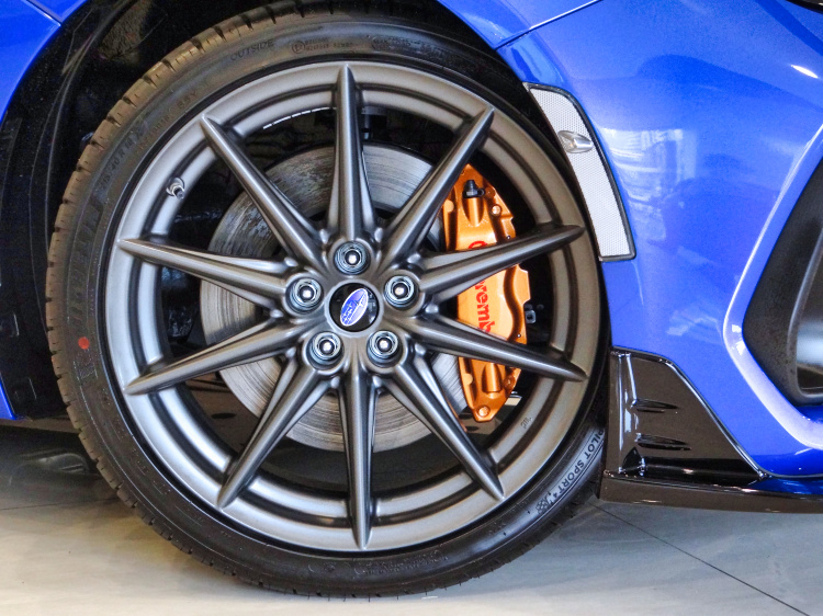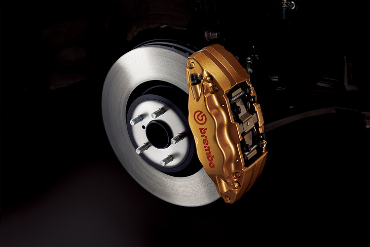 ![]() ▲BRZ STI Brembo極速性能限量版所搭載的Brembo煞車系統,採用的是金色外觀搭配紅色Brembo字體的招牌卡鉗設計。