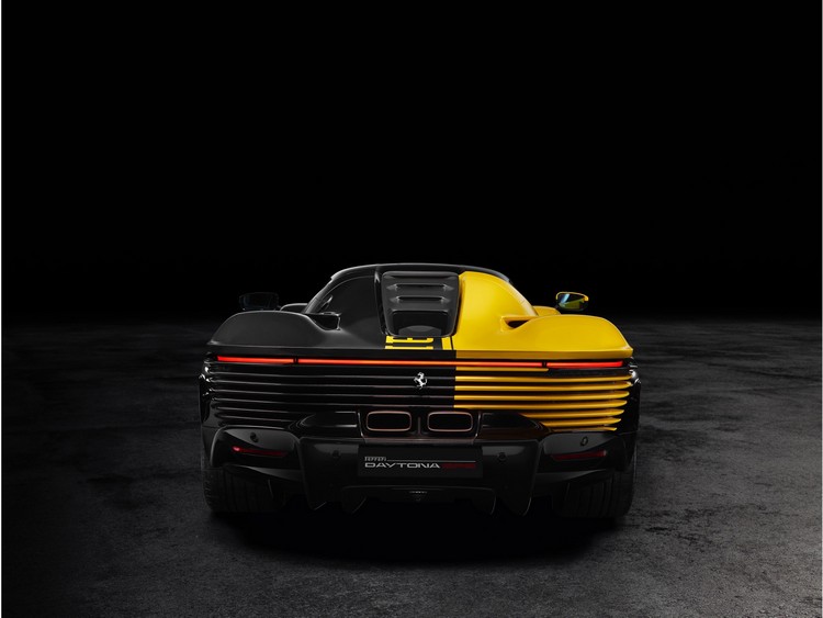 Ferrari全球限量599部的Ferrari Daytona SP3跑車早已售罄,不過最近他們又額外打造一輛特別版Ferrari Daytona SP3,作為慈善拍賣之用,預計將在今年8月的加州蒙特雷汽車週亮相,並由蘇富比拍賣行進行慈善拍賣。此輛跑車堪稱Ferrari Tailor Made個性化訂製計畫的巔峰之作,採用極具辨識度的雙色車身塗裝,碳纖維外觀與 Giallo Modena搭配,並結合亮黑色前分流器、門檻與後下擾流,形成視覺上的鮮明對比。