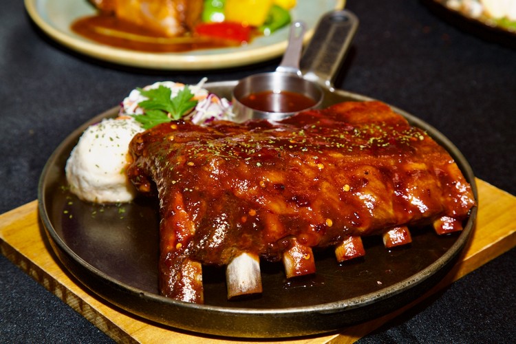 開場的「密蘇里風味香辣煙燻肋排」是整份菜單的靈魂所在。肋排帶有適度的柔嫩口感,表層裹滿熱辣微甜番茄醬,風味濃郁而富有層次。配一杯煙燻啤酒,襯托出肋排的焦糖餘韻。