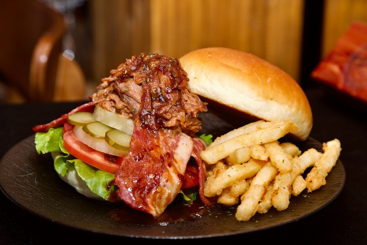 「特色密蘇里手撕豬肉漢堡」呈現中西部經典烤肉文化的精神。豬肩肉烤至柔軟後手工撕碎,與特製的甜辣烤肉醬充分拌勻,包入 ABV 精選的鬆軟漢堡麵包與新鮮蔬菜。醬汁濃郁、口感豐富,搭配麵包的香氣層層堆疊。