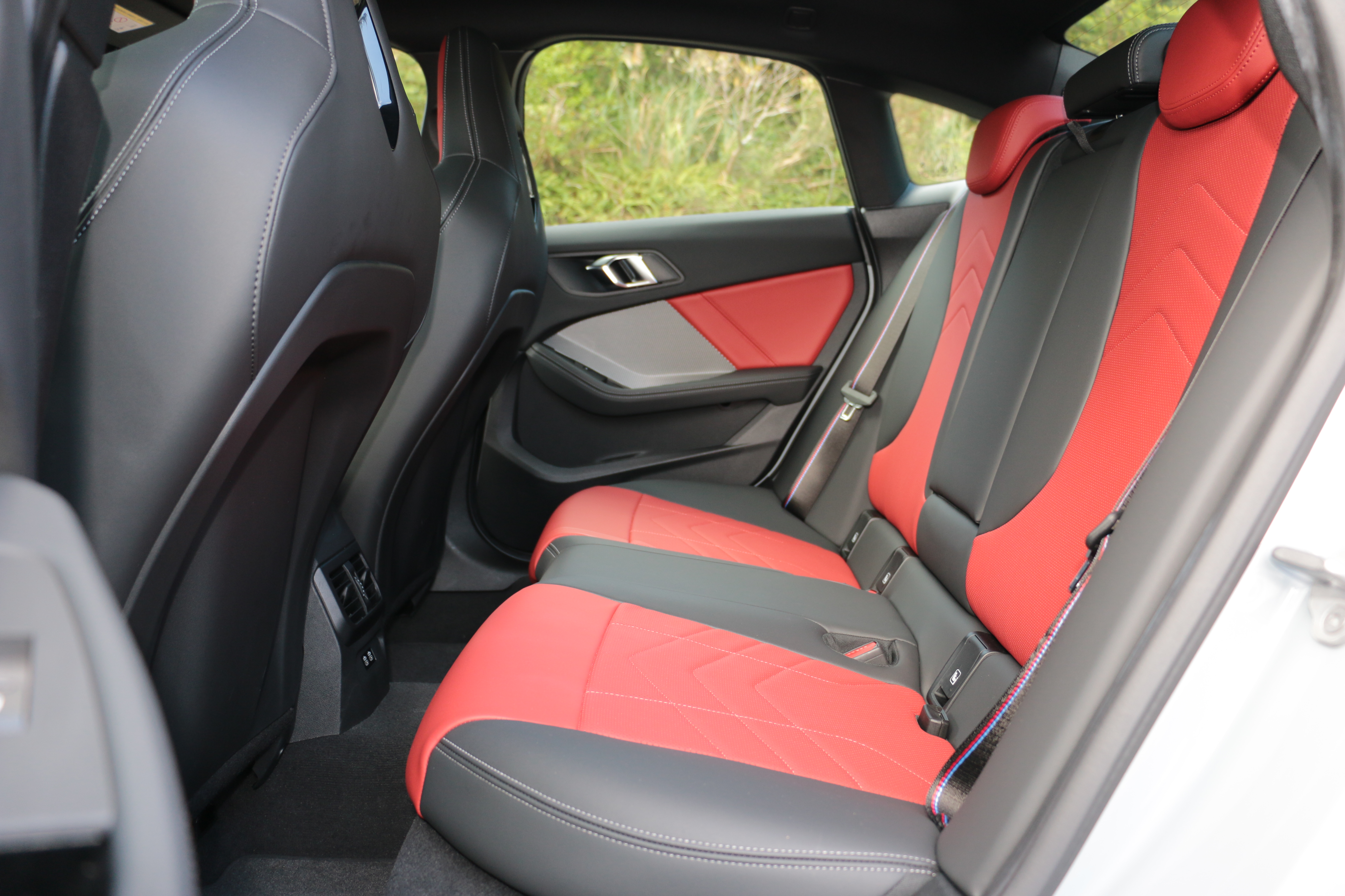 坐進車內,M235延續 BMW 一貫俐落的駕駛導向配置,但在細節之中加入更多 M Performance 的氣息。黑色頂棚、M 方向盤、強化側向支撐的跑車座椅,以及帶金屬刷紋的飾板,讓整體氛圍比一般 2GC 緊繃許多。Operating System 9系統操作直覺,數位儀表與 HUD 抬頭顯示,不管是日常通勤還是激烈駕駛都相當順手。 ![]() ▲M235延續 BMW 一貫俐落的駕駛導向配置,但在細節之中加入更多 M Performance 的氣息。![]() ▲雙前座包覆性還算可以,頭部有專屬M Logo。雖然車身線條較低,加上斜背設計讓後座頭部空間稍微受限,但腿部空間仍算過得去;而行李廂的實用度在同級中依然算得上充裕。M235的內裝不是那種一味追求輕量化而犧牲質感的類型,它是以「你每天會坐在車內」為前提,讓戰鬥氛圍和舒適性取得平衡。 ![]() ▲現今已鮮少看到實體排檔桿,都被撥鍵或者按鈕給取代。![]() ▲長按降檔撥片,會進入十秒的超增壓模式。![]() ▲雖然很想只用引擎聲浪伴隨開車時光,當高檔的音響揚聲器還是不可少。![]() ▲以四門轎車來看,行李廂空間還算充足,後座椅背支援4:2:4分離傾倒。