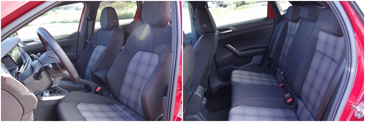 ▲標配經典格紋織布跑車座椅,包覆性與舒適性俱佳。