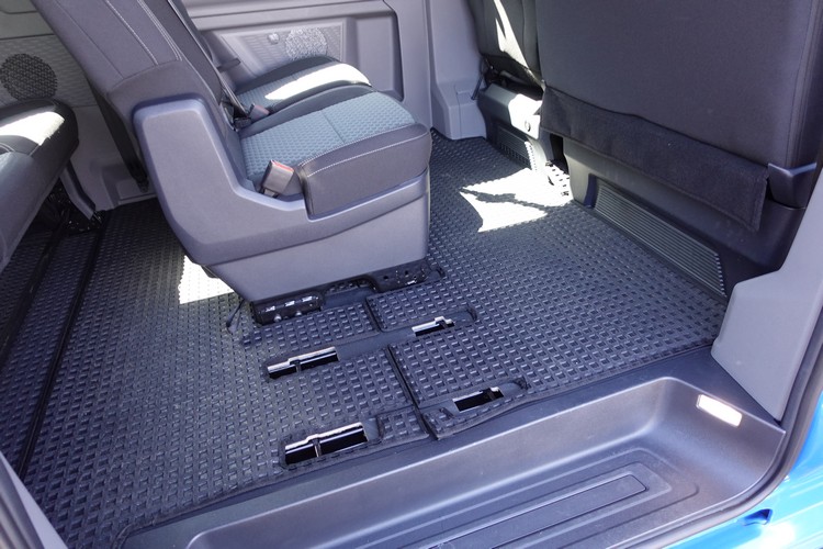 會考慮購買Caravelle的族群,肯定優先考量的是乘客艙空間,所以我們就從後排開始看起。首先,這款車訴求載客接駁功能,因此標配僅有右側滑門。