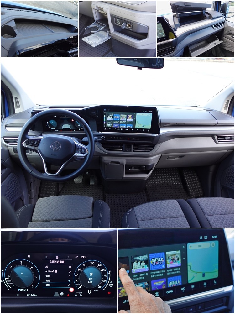 此外,駕駛艙在中控台和儀表台上方都設計了多組開放式置物處,副手座前還有雙層手套箱。數位化座艙設計確實為T7 Caravelle帶來不少便利性。