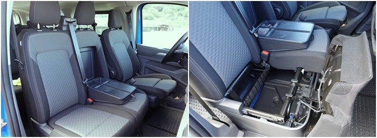▲前排中央座椅內藏隱藏式折疊桌,副手座下方還提供置物空間,方便置放隨身雜物。