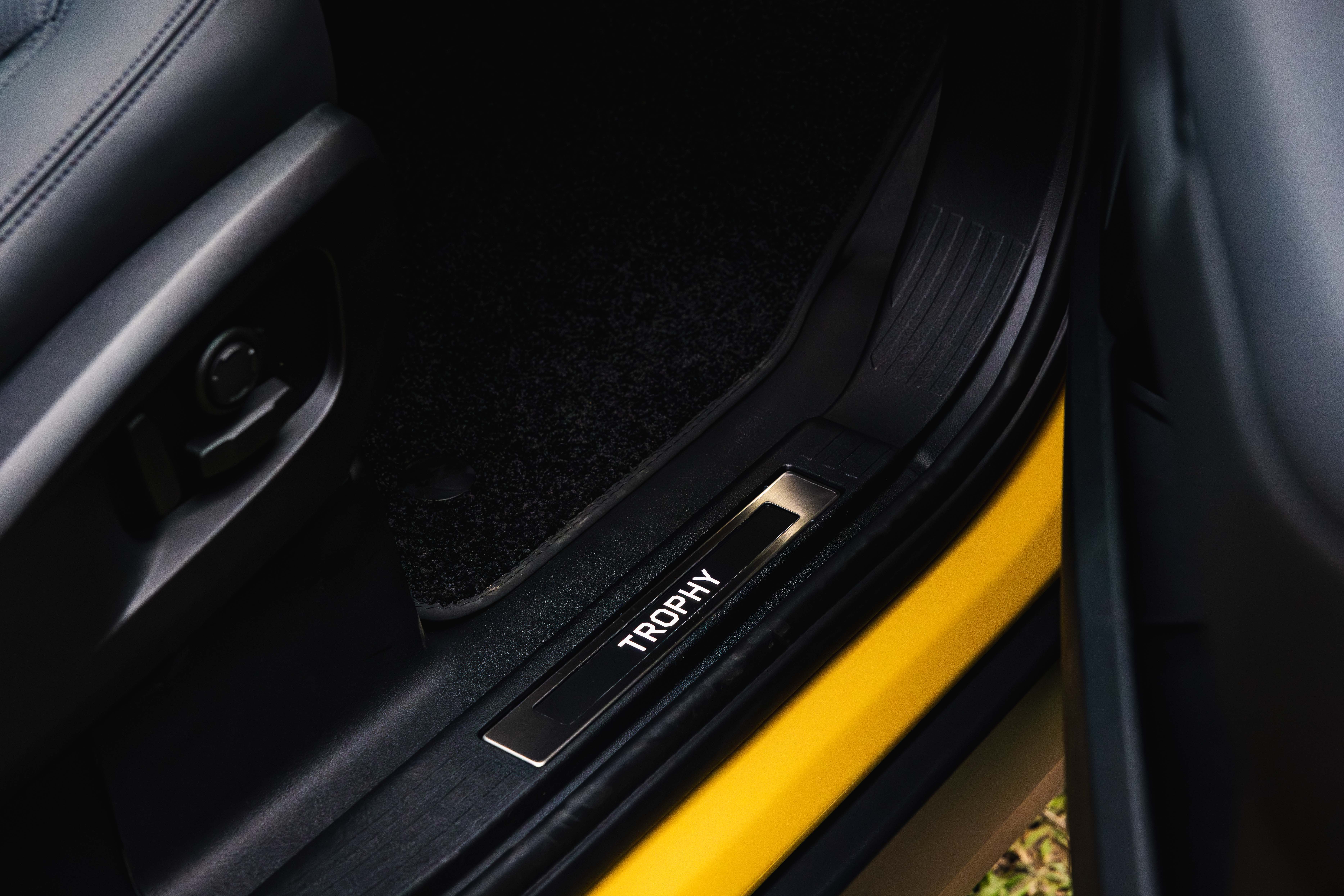 Defender Trophy Edition 限定版以全新 26 年式 Defender 110 車型為基礎,外觀提供沙光深黃(Deep Sandglow Yellow)與凱西克綠(Keswick Green)兩款專屬的經典主題配色選項,搭配引擎蓋、車身下方、煞車卡鉗與後拖車鉤採用對比鮮明的亮黑色飾面,塑造賽事主題專屬外觀識別。沙光深黃是以現代化風格,詮釋昔日 Defender 參與國際越野賽事使用的代表性色彩;而凱西克綠則是致敬 Defender 英國原創的探險精神,兩款塗裝皆可進一步選配緞光防護膜,為車身提供額外防護,讓車主能更加安心地挑戰極限,並且提升車輛耐用性。 ![]() 車身外觀運用獨特的 Trophy 專屬徽飾點綴引擎蓋與 C 柱車側飾板,搭配車尾 Trophy 徽飾銘板,向經典致敬並呼應全新賽事主題,為探險而生的專屬規格包含全新 20 吋亮澤黑色鋁合金輪圈,深色尾門護板、亮澤黑輪拱保護罩,以及亮澤黑前下護板。 ![]() 車室內裝採用 Trophy 發光車門踏板專屬識別營造賽事主題氛圍,質感出眾的檀木黑溫莎皮革座椅讓強悍風格更顯奢華,外露式儀錶板橫樑則施以車身同色塗裝,並搭配獨特的 Trophy 雷射蝕刻徽飾。 ![]() 專屬 Trophy 套件包含能提高車輛乘載量的遠征車頂架,搭配方便取放車頂物品的黑色展開式車頂梯,能讓滿載裝備的旅程擁有額外的儲物空間;車側亮澤黑外部側掛式裝備箱則能為泥濘、潮濕或沾滿沙土的物品提供額外存放空間;前後輪皆裝配經典擋泥板,以及用於過濾灰塵的加高空氣吸入孔,實現極致的越野性能。 ![]() 動力核心搭載 Ingenium 3.0L 直列六缸渦輪增壓 MHEV 柴油引擎,具備 350PS 馬力與 700Nm 最高扭力;配備電子氣壓式懸吊系統,最大化車輛全地形穿越能力,涉水能力最高可達 900mm,結合 Defender 一系列先進的駕馭科技配備,從容征服各種來自天候及地形的艱難挑戰。 ![]() 全新 26 年式 Defender Trophy Edition 限定版透過專屬主題與套件,展現勢不可擋的探險精神,全台限量 50 席次,建議售價 369 萬元起。更多車款資訊歡迎洽詢全台 Defender 授權經銷商或 Defender 台灣官方網站。 ![]()