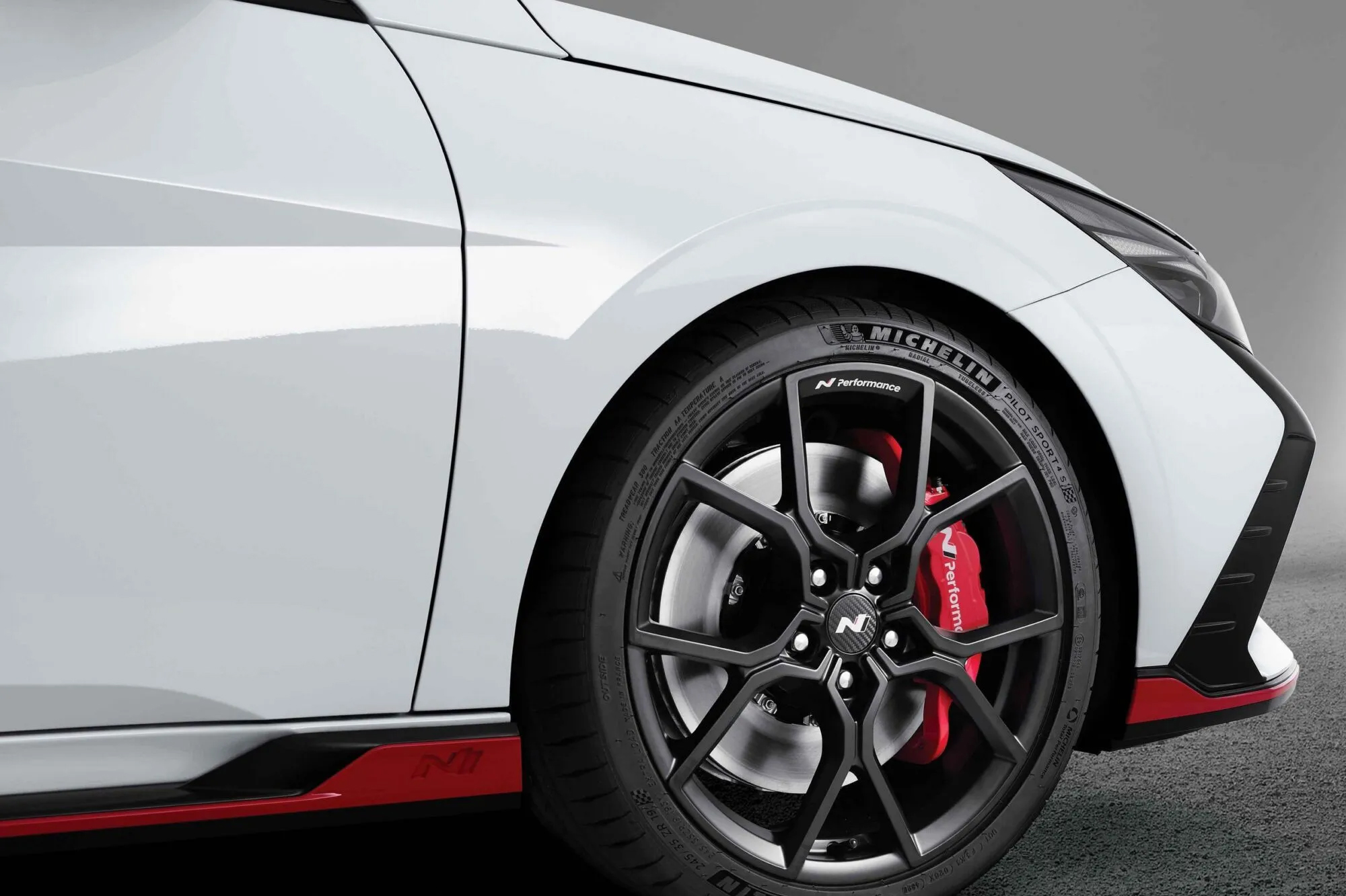 車內配件還包含 N 專屬腳踏墊與門檻飾板,後者採用高品質合金打造,可有效防止日常使用造成的刮傷與磨損。針對 Elantra N,原廠更提供進階升級選項,包括碳纖維後尾翼、碳纖維後視鏡外蓋,以及 19 吋鍛造鋁圈。該鋁圈單顆重量約 10.5 公斤,並採霧黑塗裝,兼顧輕量化與視覺效果。此外,內裝也可進一步升級 Alcantara 排檔頭、手煞車與中央扶手,強化整體戰鬥氛圍。