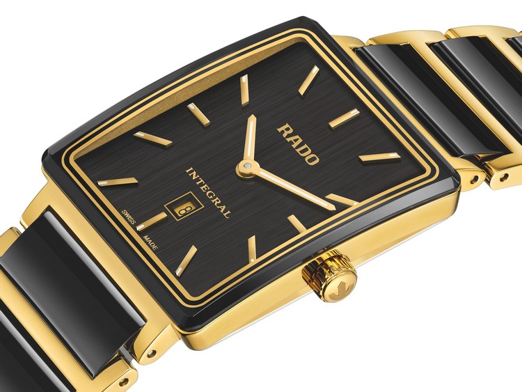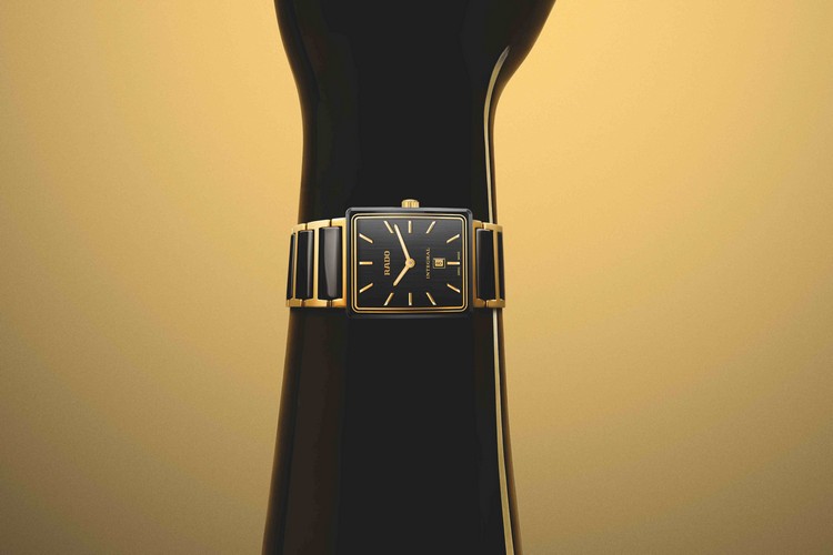 錶殼採用與原始設計一脈相承的方形構造,這種簡約而強而有力的線條感,正是 Integral 精密陶瓷系列能跨越四十年仍被視為設計經典的關鍵之一。該腕錶運用斜面藍寶石水晶鏡面,其無邊框視覺設計與極致精密的黑色及黃金色金屬化處理相得益彰,使鏡面與錶殼線條完美銜接、彷彿一體成型,在光影折射下展現出俐落且具未來感的幾何美學。