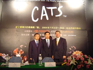 豐田汽車國內總代理和泰汽車公司,將獨家贊助『2004年TOYOTA國際音樂饗宴 CATS』,並於七月三日至七月二十五日假台北城市舞台接連演出二十七場。這場史上最長壽的音樂劇「貓」,是繼2003年首度來台演出後,今年再度登場。「貓」劇的演出雖在國內捲起了一陣旋風,但由於受到演出場次的限制,使得當時許多想要一窺「貓」劇的劇迷們,無法一償心願,透過本次和泰汽車的贊助,相信可以讓許多觀眾一圓心願。