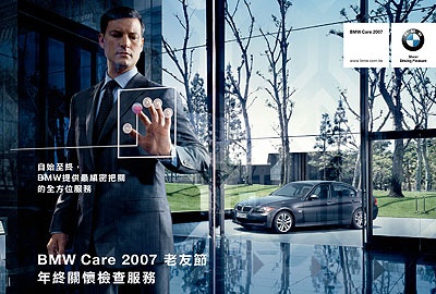為了讓BMW愛車保持最佳車況,精確無誤地提供BMW承諾的「駕乘樂趣」,汎德公司自2007年11月1日起至11月30日為止,於BMW全省服務廠同步展開「BMW Care 2007老友節-年終關懷檢查服務」,精心規劃的一系列車輛安全檢查活動。