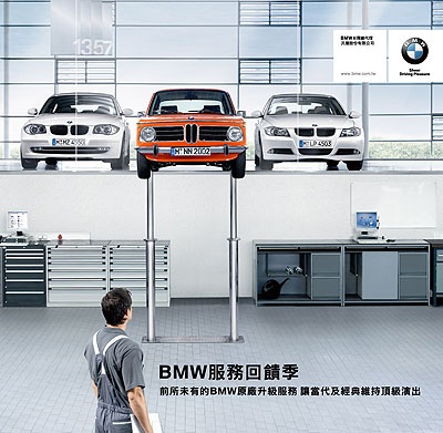 ![]() 自即日起至2009年1月23日止,於全省BMW經銷商服務廠展開的「BMW服務回饋季」活動,除了為所有BMW車主的愛車進行免費車輛節能減碳健診服務,「逢低進廠 輕鬆保健」特惠專案更提供13大類零件新低優惠價格以及特定年份經典車款再享零件與全車烤漆68折起回饋價等多項優惠活動,預約進廠不僅能享受專屬權益與各項優惠方案,還可優先體驗BMW原廠的高品質服務及獲贈精緻禮品的禮遇。