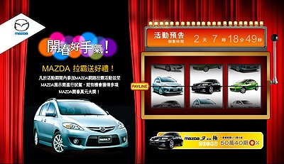 擅於以創新行銷手法與潛在客戶進行互動交流的MAZDA Taiwan,此次結合年節喜慶氣氛推出「開春好手氣!MAZDA拉霸送好禮!」網路活動,不但掀起消費者的討論話題,更吸引超過5000人次參與活動。而本次活動已正式進入倒數階段,消費者只要上網點選活動頁面(www.mazda.com.tw/2009bar)並登入個人資料後即可遊玩MAZDA拉霸遊戲,拉到三台一樣的MAZDA車型並前往展示間試車就有機會中大獎,MAZDA更提供消費者零利率購車優惠!如此好康僅到2月28日為止,還不趕緊上網卡位試駕去!