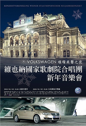 長期贊助藝文活動的Volkswagen福斯汽車總代理太古標達汽車,在2010年新春期間將再次邀請維也納國家歌劇院合唱團來台表演,除了元月初台北、台中、高雄的場次之外,在12月31日台北車展的Volkswagen會場也會邀請他們到場獻藝。