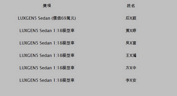 ![]() 已於3/25日劃下完美句點的「我是未來‧一拍即得」活動,最令人期待的重頭戲就是全新世代跑房車LUXGEN5 Sedan獎落誰家?為此,LUXGEN特別於3/26假新店總部進行公開抽獎儀式,在林哲健律師的見證,最後由來自新北市淡水區的后先生從所有完成認證的參加者中脫穎而出,幸運入主價值69萬元的全新世代跑房車LUXGEN5 Sedan,成為實至名歸的一拍即得幸運得主。