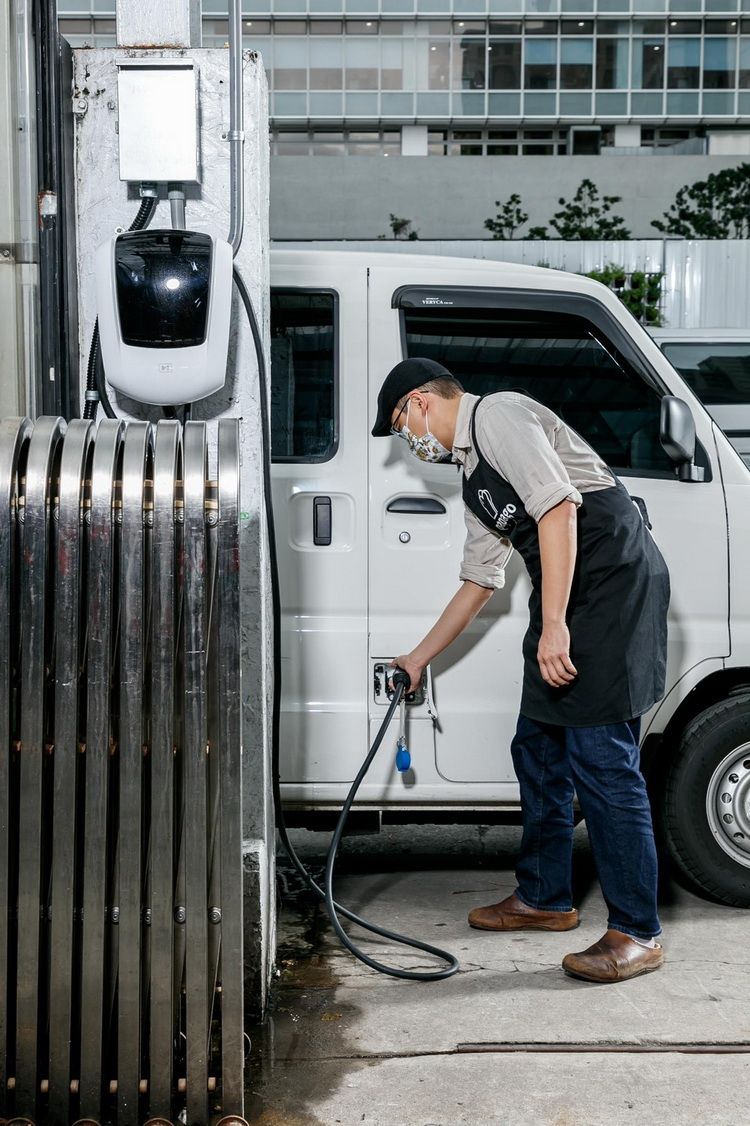 e-VERYCA菱利電動車採用與BMW同等級Samsung SDI 電池,行駛里程足以供應「趴趴走美食工坊」外送範圍,司機早上出門送餐,晚上透過壁掛充電器便利充電,輕鬆滿足每日行走的需求。「趴趴走美食工坊」擁有18台菱利,張鑑弘坦言,車輛管理成本是公司很大的支出項目之一,以油車而言,基本油錢及一年兩次的保養費用,每台車的花費大約在58,000元/年,但是透過菱利電動車「車電分離租賃方案」,電動車前8年每個月電池租賃費用為2,899元(第8年後月租費調降為1,899元),每台電動車的支出成本降到34,788元/年,對精打細算的企業來說電動車真的是非常划算的選擇。加上公司司機平均年齡在40歲上下,電動車等同於自排車的特性,也解決了年輕人普遍不會開手排車的問題。