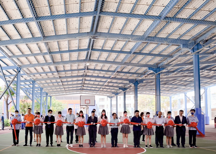 「陽光球場」由裕電能源與「迅捷光電」合作,將原本的露天球場進行改造,有別於風雨球場搭建模式,以太陽能板取代鋼浪板鋪設超過1,600片,佔地面積達3,300平方公尺,光電板架高達9公尺,充分運用太陽能板透光性較高,不需要額外輔助燈光照明,「陽光球場」擁有專利認證的屋頂構造設計工法,利用鋼構下鎖式設計工法安置太陽能模組,讓每片模組達到緊密貼合效果,且以不銹鋼螺絲鎖附與塗抹防鬆脫膠,提供校方安全實用且環保的「陽光球場」,有效降低露天球場溫度,解決光線不足時照明耗電問題,不僅達到綠色永續校園目標,更提供屏東縣學子更佳運動學習環境。