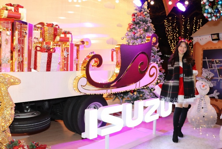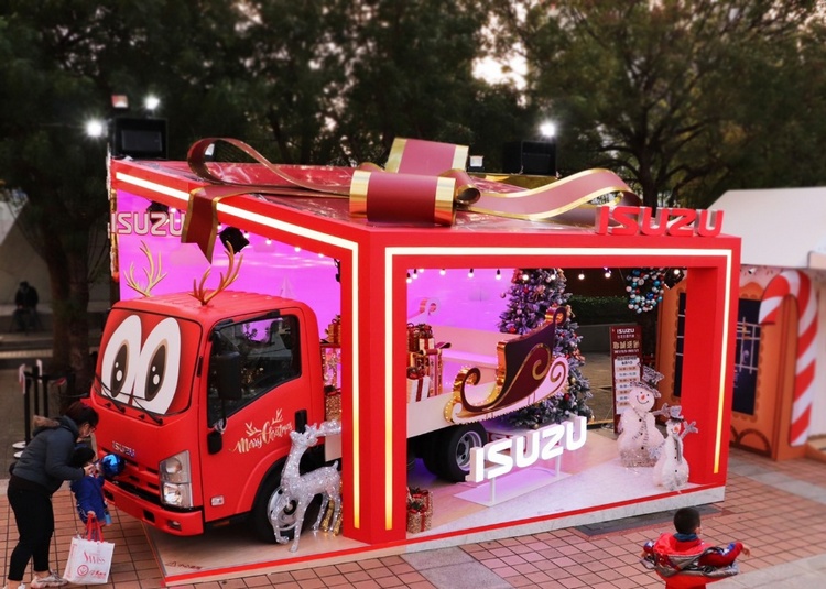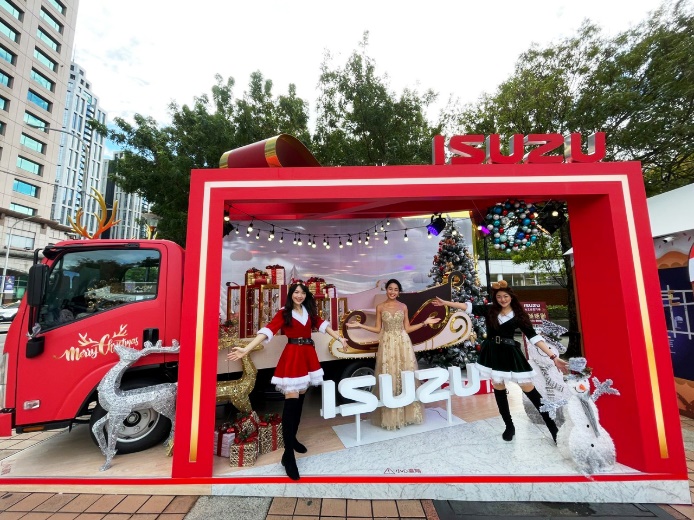 「新北歡樂耶誕城」眾多看點中,絕對不容錯過的是 ISUZU台北合眾汽車送出的耶誕好禮。經典耶誕紅的巨無霸大禮物盒內,裝載著由ISUZU NLR 五噸貨車改裝而成的獨家「麋鹿雪橇車」。超可愛的「麋鹿雪橇車」車頭有金色鹿角、亮藍色的鼻子,圓滾滾的大眼睛充滿即將駕車出發的生命力。最令人驚喜的是,這台「麋鹿雪橇車」不只是裝飾,大小朋友都可以登上這台雪橇拍照留念,也是人氣網美必拍的IG打卡點,只要搭上車,就能用想像力帶你飛到雪國!