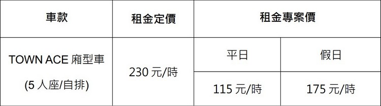 ![]() iRent導入TOWN ACE廂型車5人座車款(自排),車室空間輕鬆變化,後車廂可承載825公斤超大容量,同時滿足載人載物多種用途,民眾不論是搬家、載貨,或是旅遊行程如戶外運動、露營等,乘用商用皆宜;除了絕佳車廂空間外,TOWN ACE廂型車搭載側滑門,超大開口設計,無論搬運貨物或乘員進出都能自在無負擔。此外,TOWN ACE廂型車具備最小迴轉半徑4.9公尺的設計,可靈活操作、自由無負擔地穿梭在街頭巷弄。
