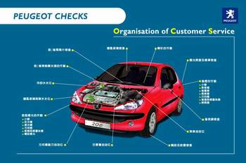 為達到超越車主期望的服務,自2002年初開始,PEUGEOT總代理協和國際依據PEUGEOT法國原廠所規劃並參考國內市場動態及消費者習性,規劃出一套自新車銷售起一切以車主感動為導向的優質售後服務系統,稱之為「顧客整體服務系統(Organization of Customer Service簡稱O.C.S)」,在這套系統中,首先,以考量車主的行車安全為出發點,為每位回廠維修的車主進行愛車基礎檢測作業-我們稱之為「PEUGEOT CHECKS─免費愛車基礎檢查服務」,此一服務是除了車主指定的維修項目外,為了車主的行車安全所進行的基礎項目檢測,其目的乃是想提供予車主更安全的行車環境。