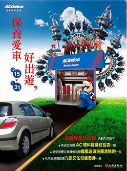 又到了年終歲末車主保養愛車與旅遊的旺季,AC德科(AC Delco)為了給消費者一個不一樣的驚喜回饋,特別與國內知名遊樂園「九族文化村」合作,舉辦一系列優惠活動。活動期間,凡至AC德科服務中心消費,便可獲得AC德科所提供之遊樂園門票優惠券,同時,AC德科還搭配一系列的「保養愛車好出遊」活動,讓消費者不管是全家出遊或與好友一同共享,都能夠平安順利又經濟。